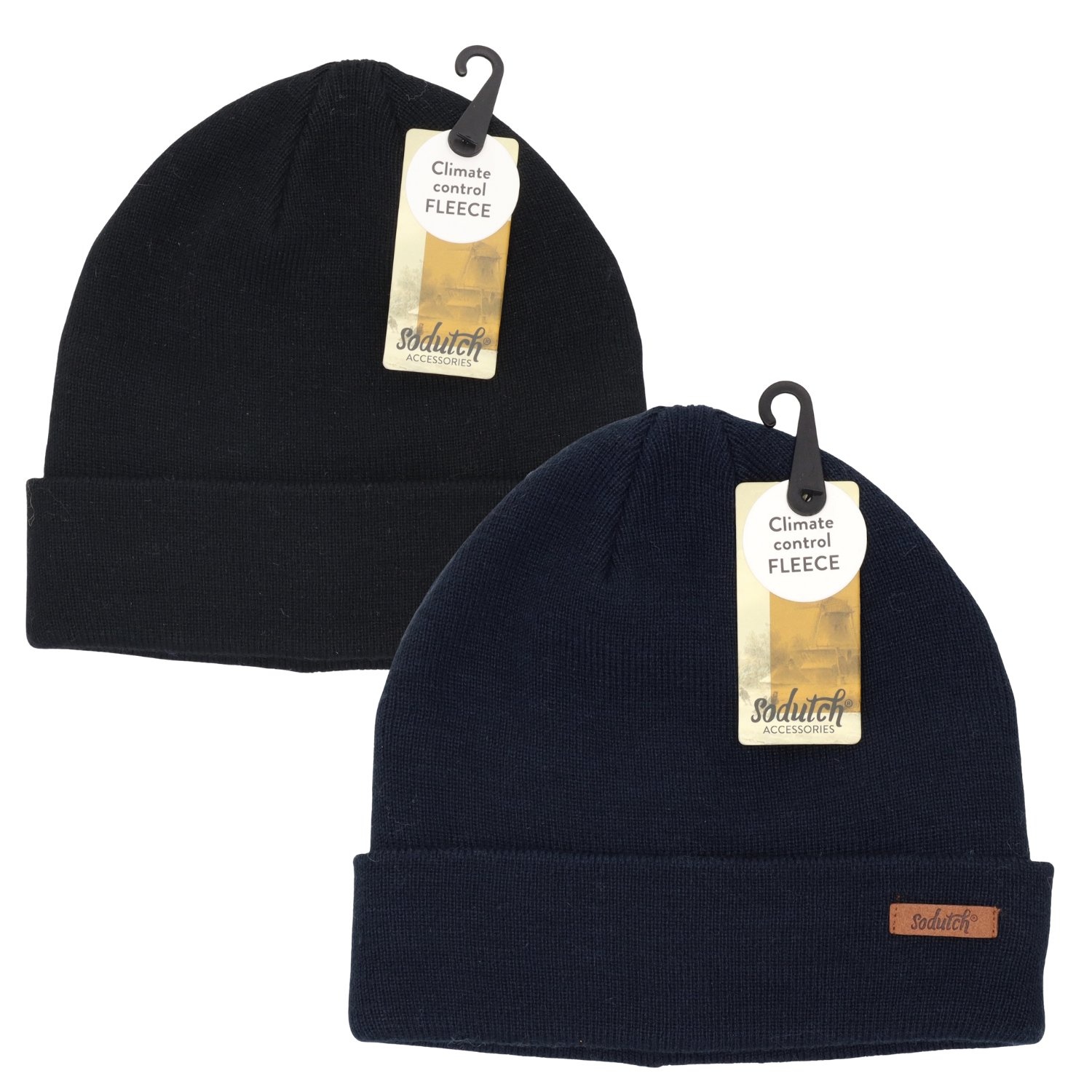 Sodutch Muts Plain Fleece Lined - Assorti. Een effen muts met heerlijk met pluche gevoerde binnenkant. Dit zorgt ervoor dat de muts extra zacht en warm is. Wordt geleverd in een assorti van zwart en donkerblauw. Materiaal: 50% polyester en 50% acryl.